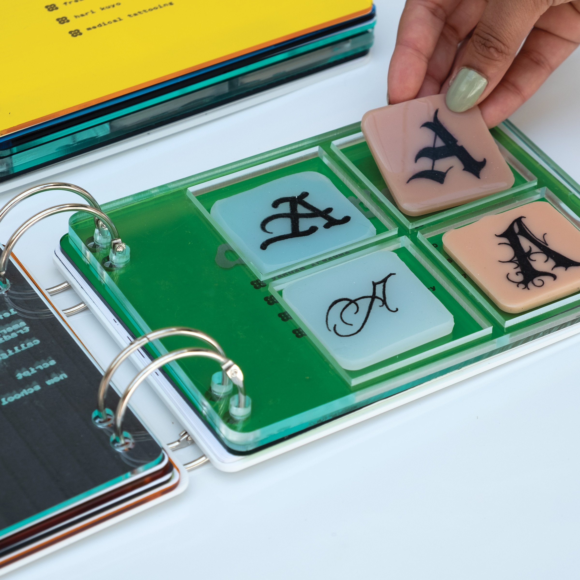 Designed, and fabricated book outlining the history of tattooing from its Polynesian roots to present day styles and trends. There is a typography chapter that includes a plexi case with removable silicone swatches that have beentattooed with American traditional, calligraphic, script, and new school lettering. Other chapters touch on the contested history of ‘freakshows’, the Japanese yakuza and irezumi, and tattooing’s crossover with the fine art world.